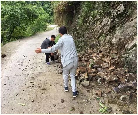 在進(jìn)行測區(qū)控制控制點采集的路途中,由于近期陰雨連綿,導(dǎo)致前方山體滑坡,落石擋住了前行的道路,由于沒有工具,只能下車徒手對路面的滑坡堆積物和垮塌的碎石進(jìn)行清理。經(jīng)過一個多小時的奮戰(zhàn),道路才恢復(fù)暢通。