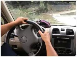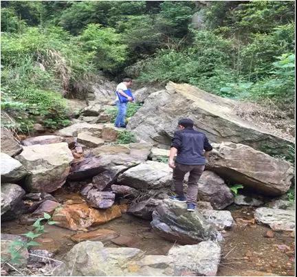 做像控的第二天,我們又遇到了一個難題,有一個落在山上的像控點,需淌過河道、翻越一座大山才能到達(dá)目的地。為了保證順利完成工作,組長決定進(jìn)山刺點。剛進(jìn)山的過程中,車沒開多遠(yuǎn),一條河阻擋了我們行進(jìn)的腳步,河水很深,徹底沒路了,大家只能放棄乘車,慢慢的趟過去,然后繼續(xù)前行,山路上荊棘叢生,一不小心就會被劃傷。