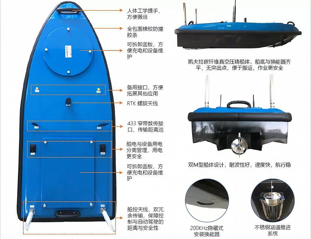8、測(cè)深:內(nèi)置200khz單頻測(cè)深儀,量程0.5m-200m,精度0.01H(水深),分辨率0.01m,模擬數(shù)據(jù)自存儲(chǔ),數(shù)字?jǐn)?shù)據(jù)實(shí)時(shí)串口輸出