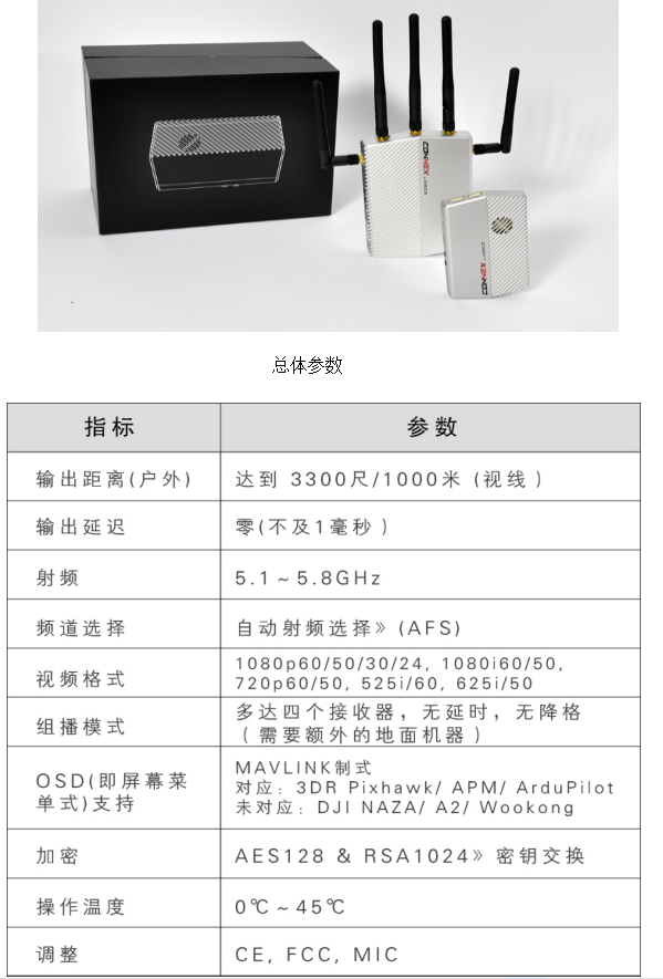 Amimon CONNEX是一款專為無人機市場設(shè)計的圖傳系統(tǒng),其特點是零延遲(不及1毫秒)?商峁1080P和每秒60幀的全高清畫質(zhì)。