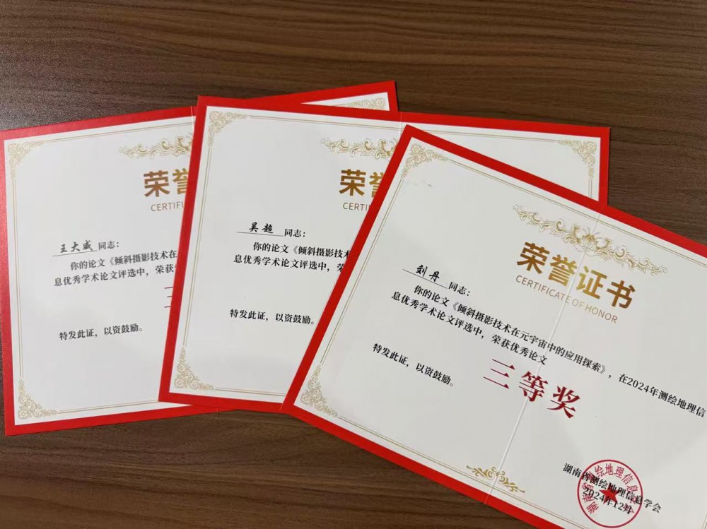 同時(shí),在本次大會(huì)上還頒發(fā)了2024年測(cè)繪地理信息優(yōu)秀學(xué)術(shù)論文獎(jiǎng),湖南超立方空間信息技術(shù)有限公司的王大威、吳超、劉丹三位優(yōu)秀工作者,以論文《傾斜攝影技術(shù)在元宇宙中的應(yīng)用探索》榮獲2024年測(cè)繪地理信息優(yōu)秀學(xué)術(shù)論文三等獎(jiǎng)。